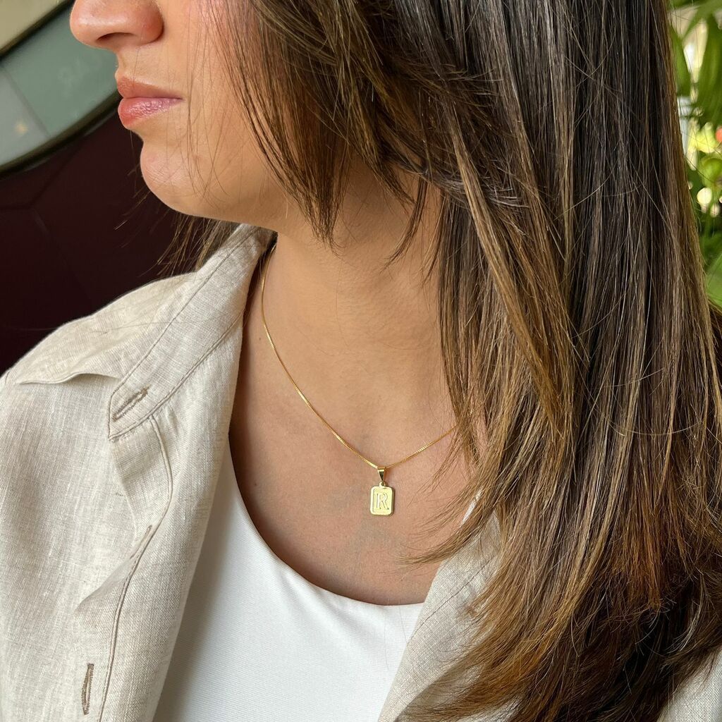 Adicione um toque pessoal ao seu estilo com o Colar com Pingente Inicial Alto Relevo Banhado a Ouro 18K e destaque-se com elegância e charme!